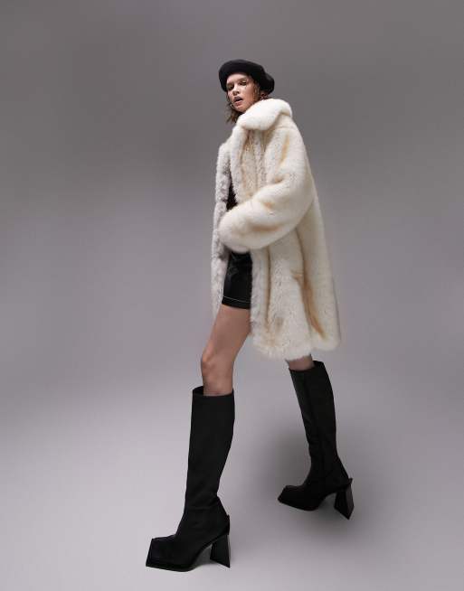 Topshop cropped faux fur coat in tipped winter white Very well made.