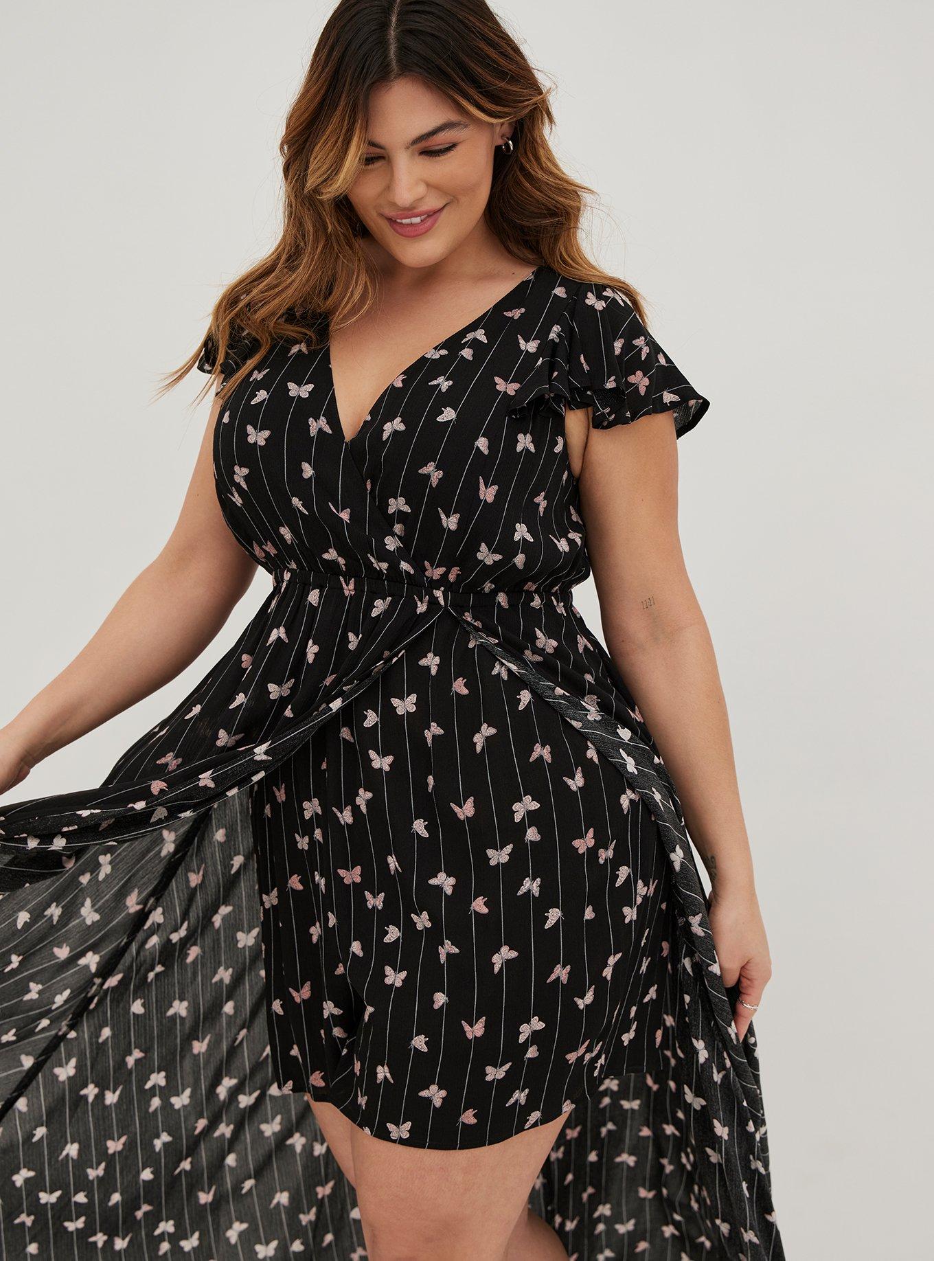 Torrid Women s Plus 1X Midi Chiffon Mock Neck Skater Dress Butterfly Print NWT Very well made.