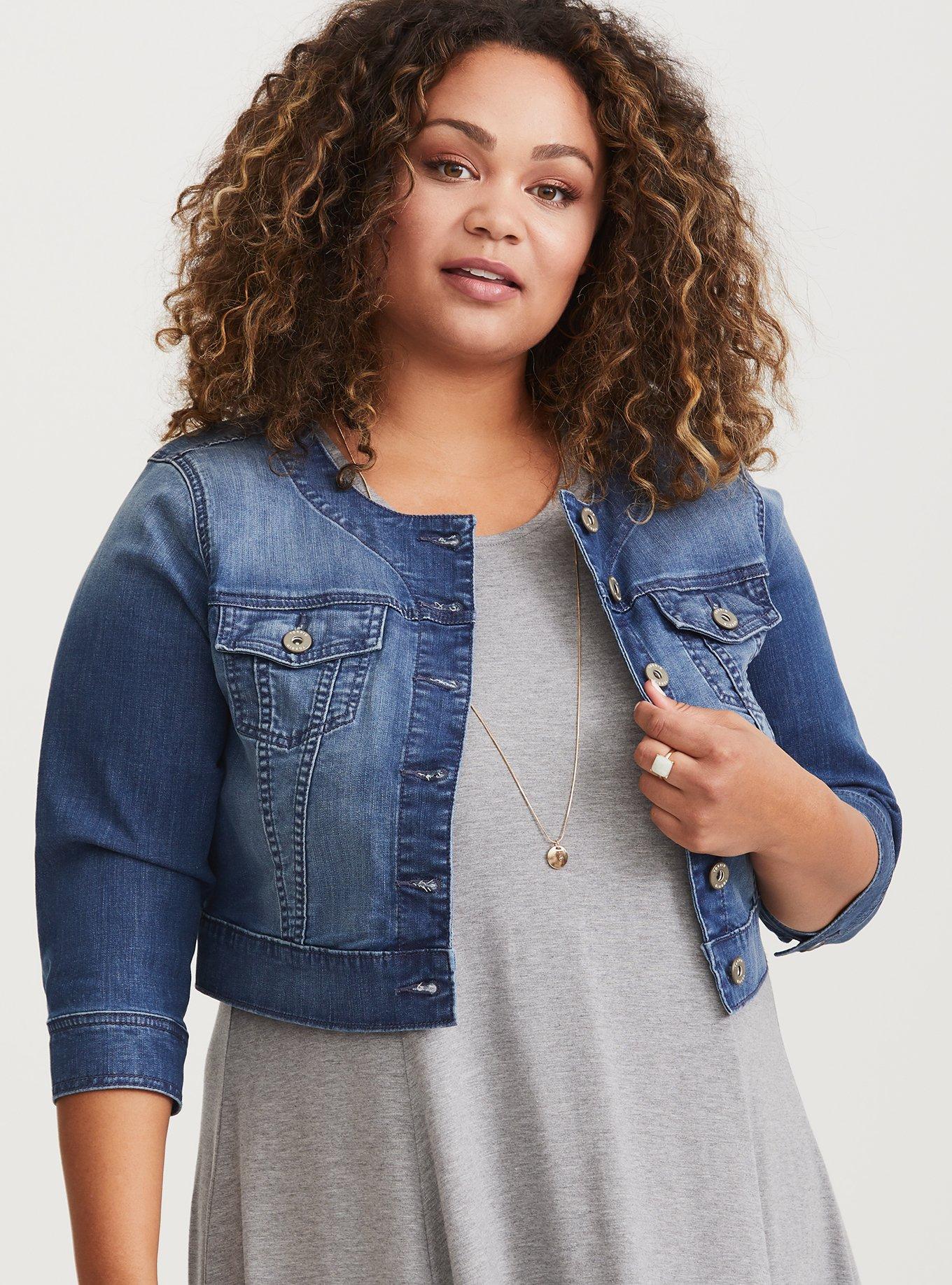 Plus Size Denim Crop Collarless Jacket Torrid Very well made.
