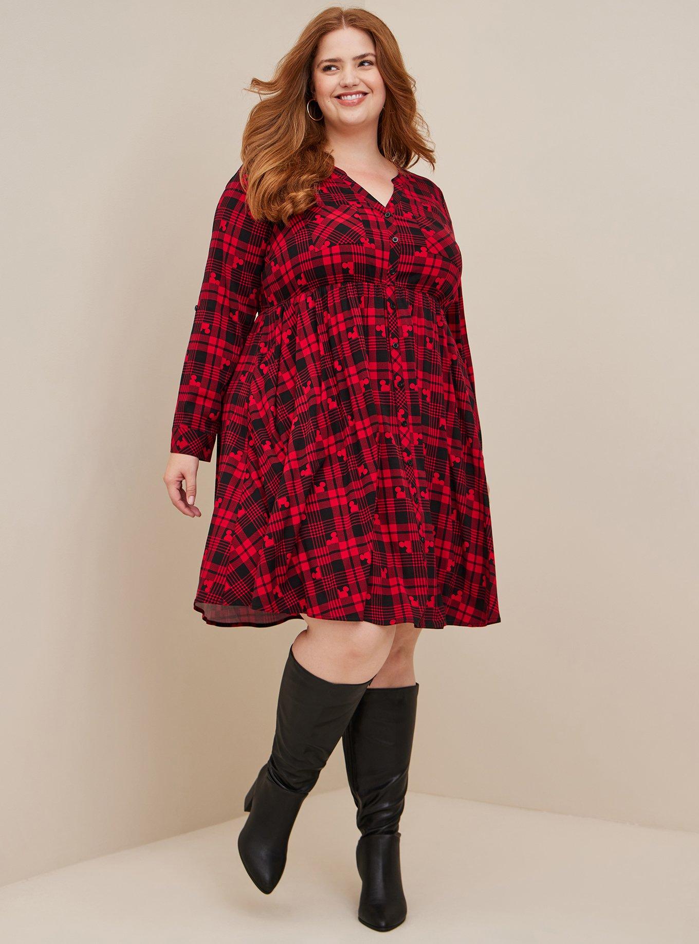Plus Size Disney Mickey Mouse Red Black Plaid Button Front Very well made.