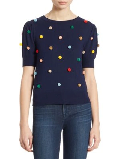 Alice And Olivia Brady Pompom embellished Knitted Stretch cotton Very well made.