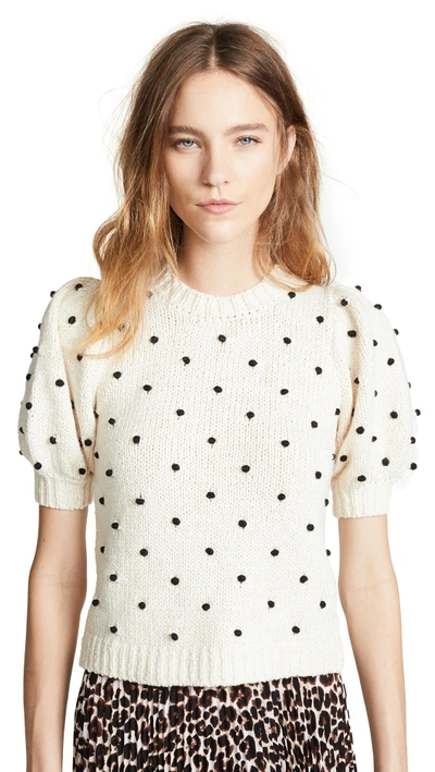 Ulla Johnson Bettine Pompom embellished Cotton Sweater In Cream Very well made.