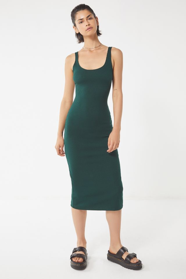 UO Bella Ribbed Knit Bodycon Midi Dress Urban Outfitters Very well made.