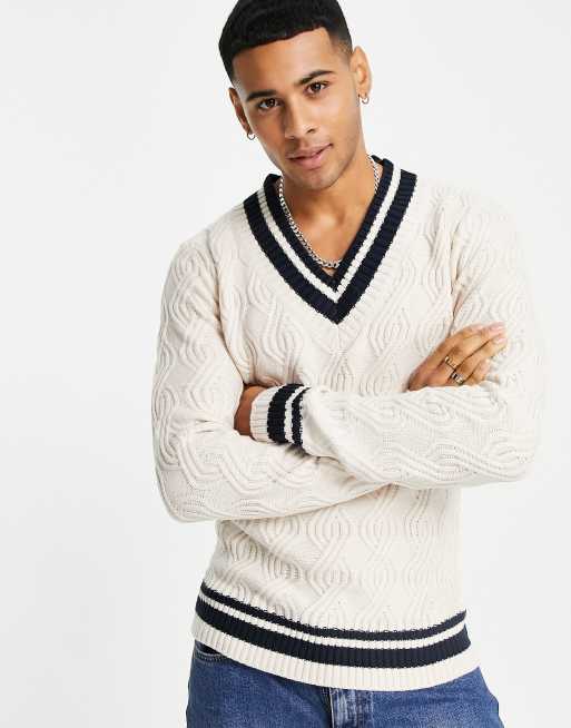 Gianni Feraud collegiate cable knit v neck jumper ASOS Very well made.