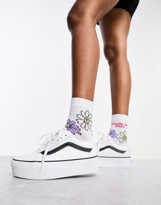 Vans Old Skool Stackform Platform Leder Sneaker in Wei mit seitlichem schwarzem Streifen Very well made.