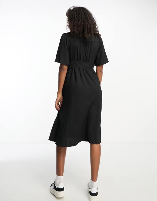 Vero Moda linen touch flutter sleeve midi dress in black Very well made.