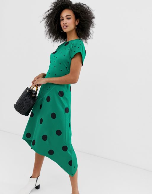 Warehouse hanky hem dress in mixed polka dot Very well made.