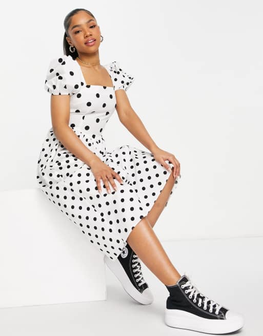 White and Black Spot Rachel Babydoll Midi Dress Nobody s Child Very well made.