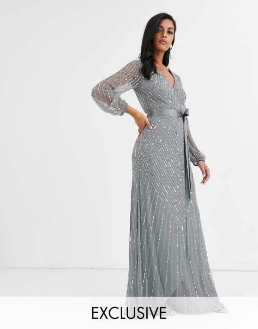 Amelia Rose bridesmaid embellished maxi dress with wrap detail in Very well made.