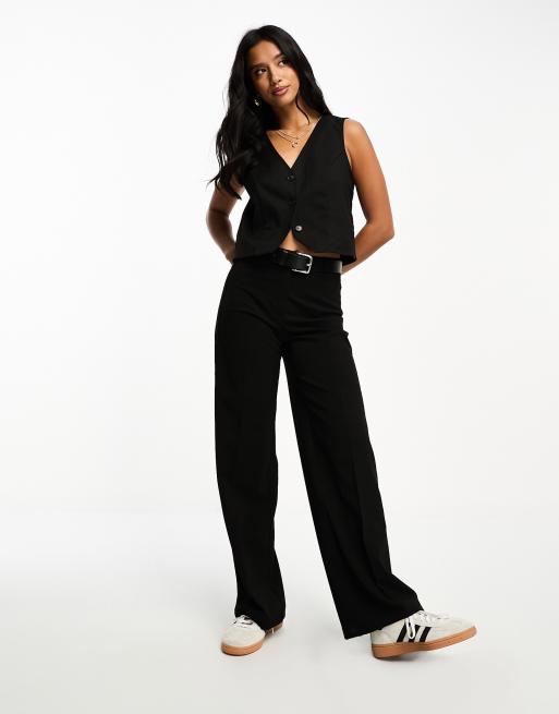 Stradivarius Petite linen look wide leg pants in black Very well made.
