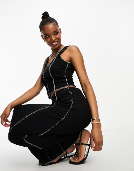 Vero Moda jersey maxi skirt with contrast stitch in black part Very well made.