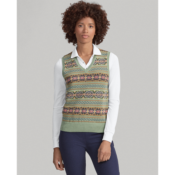 Vintage Polo Ralph Lauren Sweater Vest Womens L Red Black Fair Isle Hand Knit Very well made.