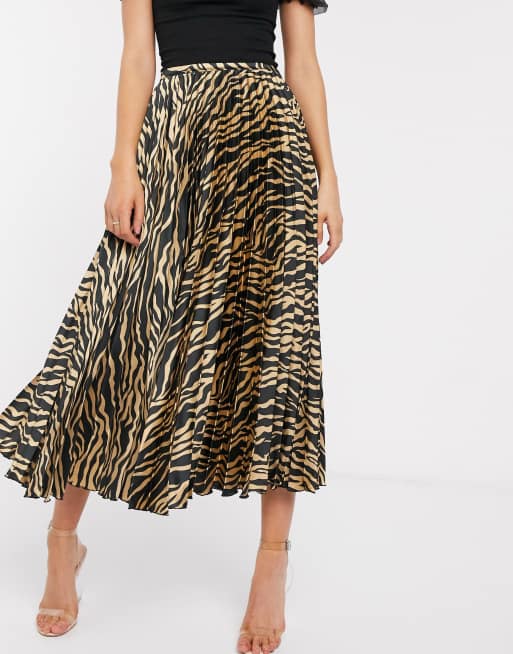 ASOS DESIGN Tall satin pleat midi skirt in zebra print ASOS Very well made.