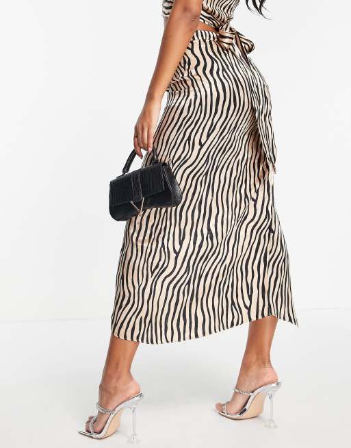 ASOS DESIGN satin wrap midi skirt in zebra print part of a set Very well made.