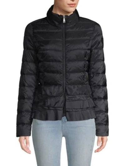 Zoey Ruffled hem Packable Puffer Coat In Black Very well made.