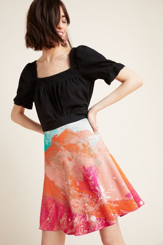 Anthropologie Skirt Small Scenic Sweater Pencil Blue Orange Knit Very well made.