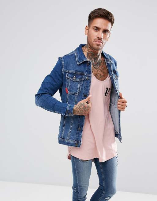 11 Degrees Muscle Denim Jacket In Midwash Blue ASOS Very well made.