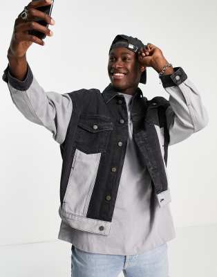 ASOS DESIGN oversized fit denim jacket in black patchwork ASOS Very well made.