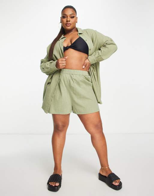 ASOS DESIGN Curve textured beach short in khaki part of a set ASOS Very well made.