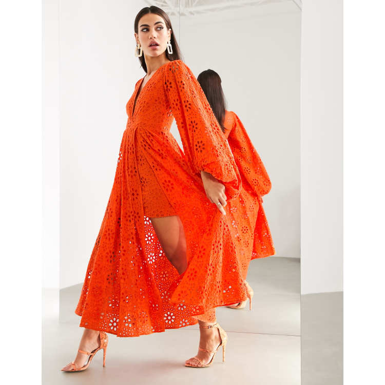 ASOS EDITION broderie midi dress with blouson sleeve in tomato red Very well made.