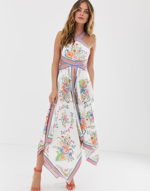 ASOS EDITION Petite scarf print halter midi dress with cutout sides Very well made.