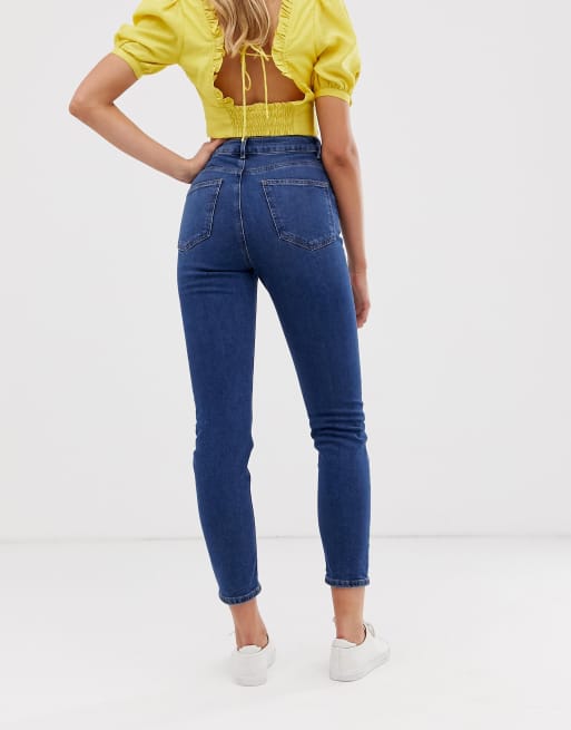 ASOS DESIGN high rise farleigh slim mom jeans in dark wash MBLUE Very well made.