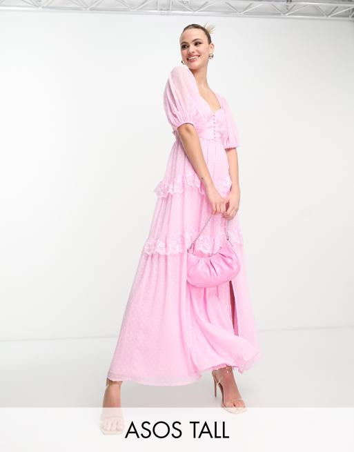 ASOS DESIGN Tall Maxi Freizeitkleid in Hellrosa aus Stoff mit erhabener Punktestruktur R ckenausschnitt und Spitzeneinsatz Very well made.