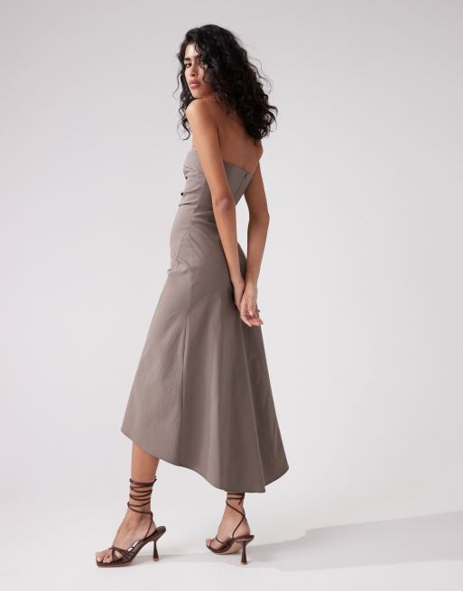 ASOS DESIGN bengaline bandeau knee length dress in taupe Very well made.