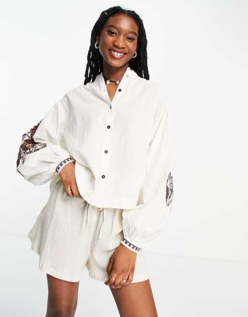 Maison Scotch embroidered top with voluminous sleeves in white ASOS Very well made.