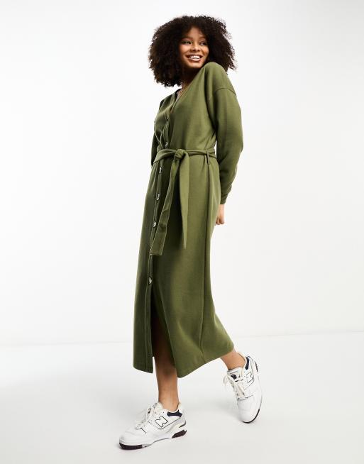 ASOS DESIGN supersoft button through maxi cardigan belted dress in khaki KHAKI Very well made.