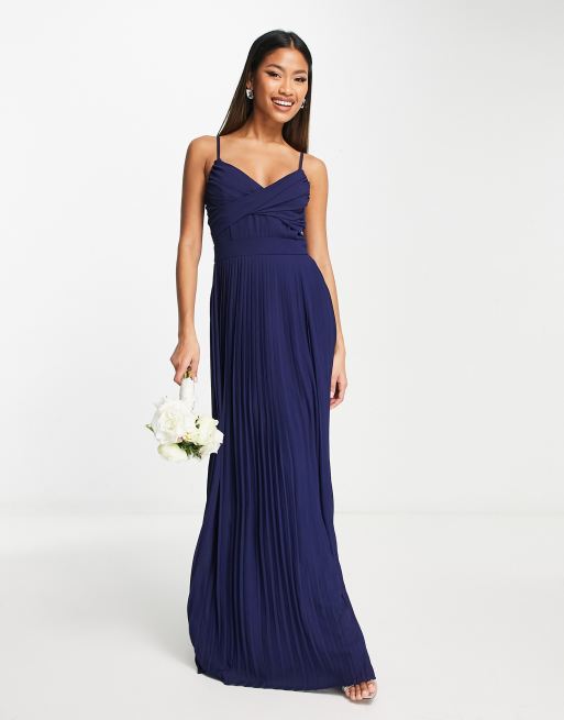 TFNC Bridesmaid pleated wrap front maxi dress in navy blue Very well made.