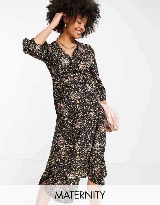 New Look Maternity wrap midi dress in black floral print Very well made.