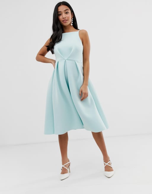 ASOS DESIGN Petite bare shoulder prom midi dress in frosty sage Very well made.