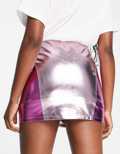 ASOS DESIGN patchwork metallic faux leather mini skirt in pink Very well made.