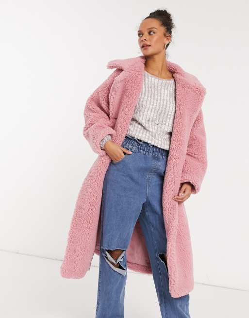 ASOS LUXE Curve borg long line trench coat with belted waist in pink Very well made.