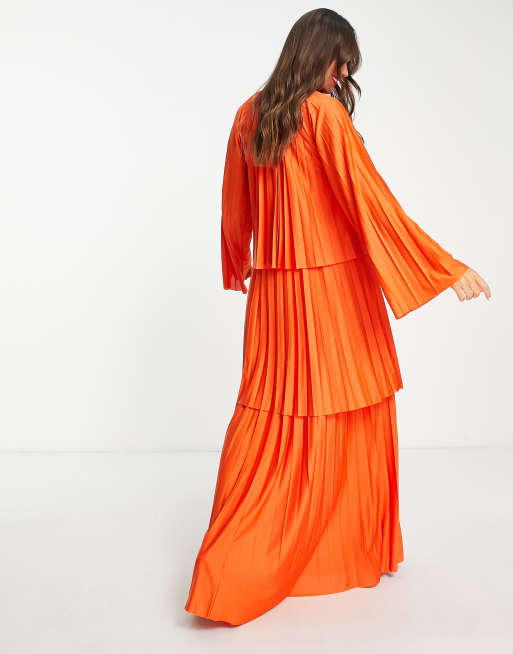 ASOS DESIGN Robe longue pliss e volants Orange MULTI Very well made.
