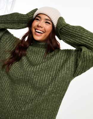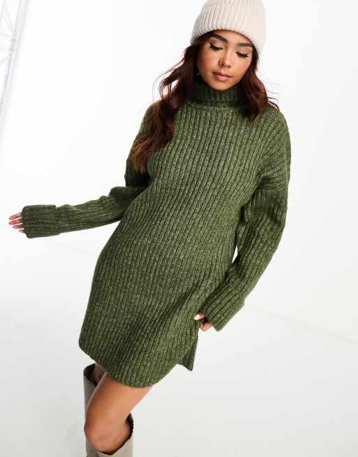 ASOS DESIGN Robe pull courte en maille avec col montant Kaki Very well made.