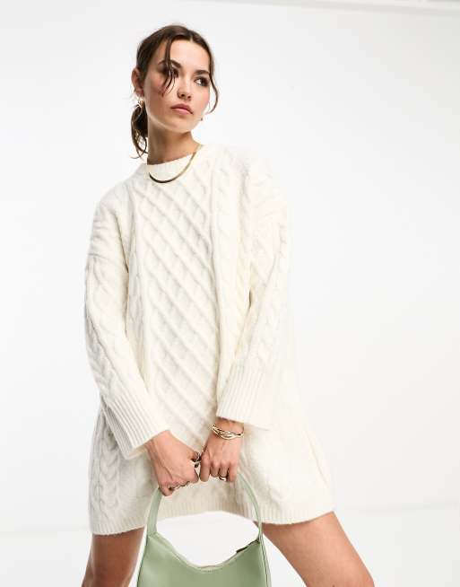 ASOS DESIGN Robe pull courte oversize en maille torsad e Cr me Very well made.
