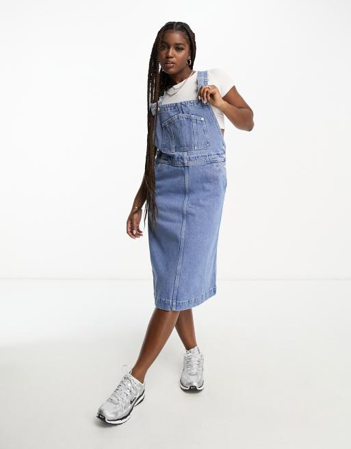 ASOS DESIGN denim midi dungaree dress in mid wash blue Very well made.