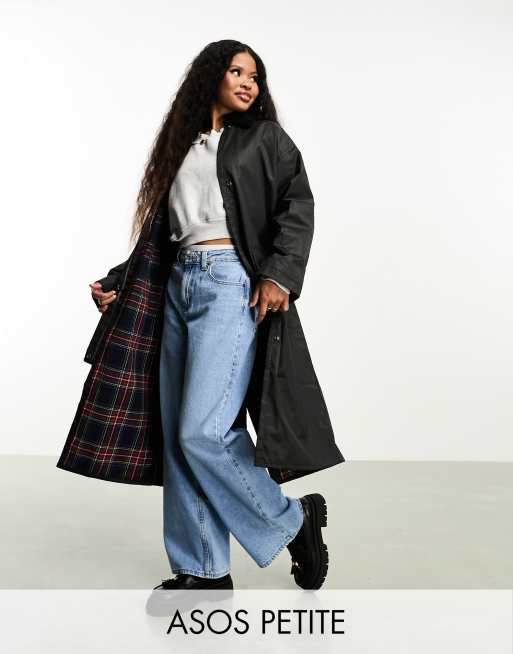 ASOS DESIGN Petite wax trench with check lining in black Very well made.
