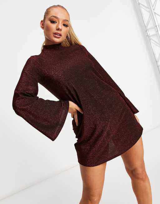 Flounce London 60 s swing dress in glitter burgundy ASOS Very well made.