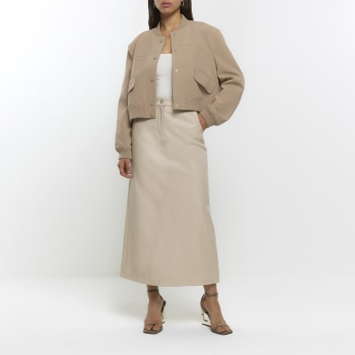 River Island belted quilted faux leather mini skirt in beige Very well made.
