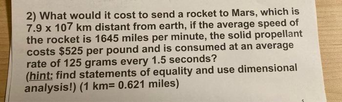 Solved 2 What would it cost to send a rocket to Mars which Very well made.