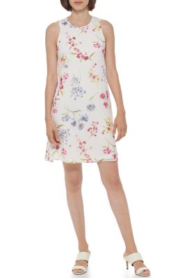 Calvin Klein Women s Sleeveless Ivory Floral Chiffon Trapeze Dress Very well made.