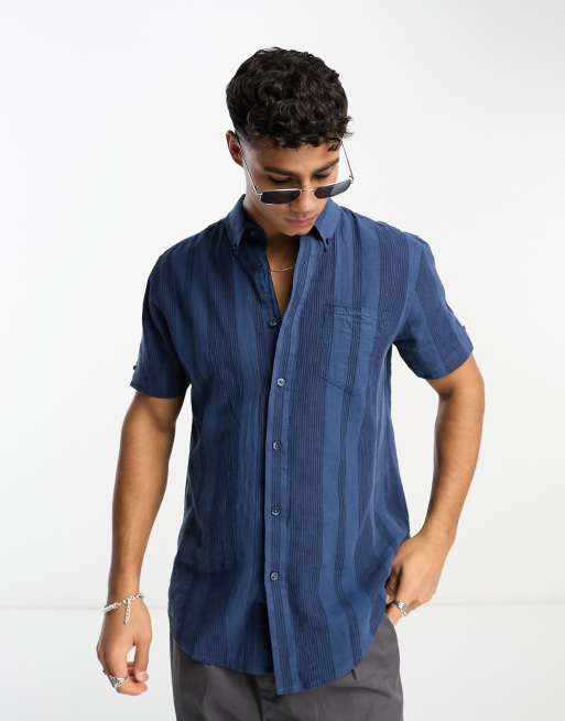 Ben Sherman Camicia a maniche corte in misto lino blu scuro a Very well made.