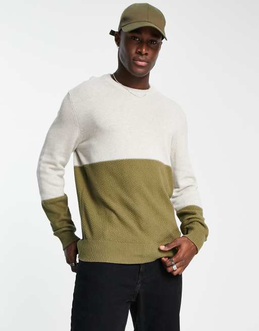Ben Sherman textured panel jumper in white and khaki ASOS Very well made.