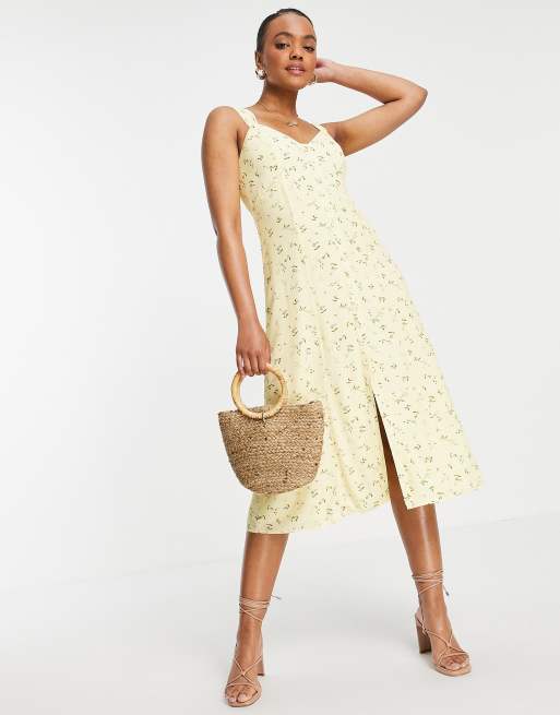 Ever New 90s button up tea midi dress with split in lemon floral Very well made.