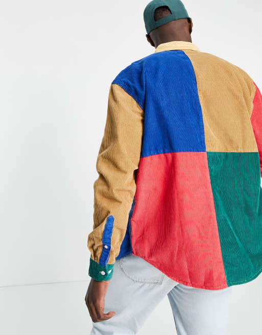 ASOS DESIGN 90s oversized cord shirt in colour blocking with chest Very well made.