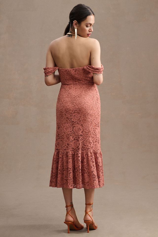 BHLDN Phoebe Off Shoulder Lace Midi Dress in 2023 Lace midi Very well made.