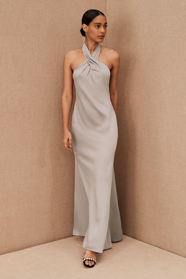 BHLDN Ruby Twist Halter Satin Gown Charmeuse dress Neutral Very well made.